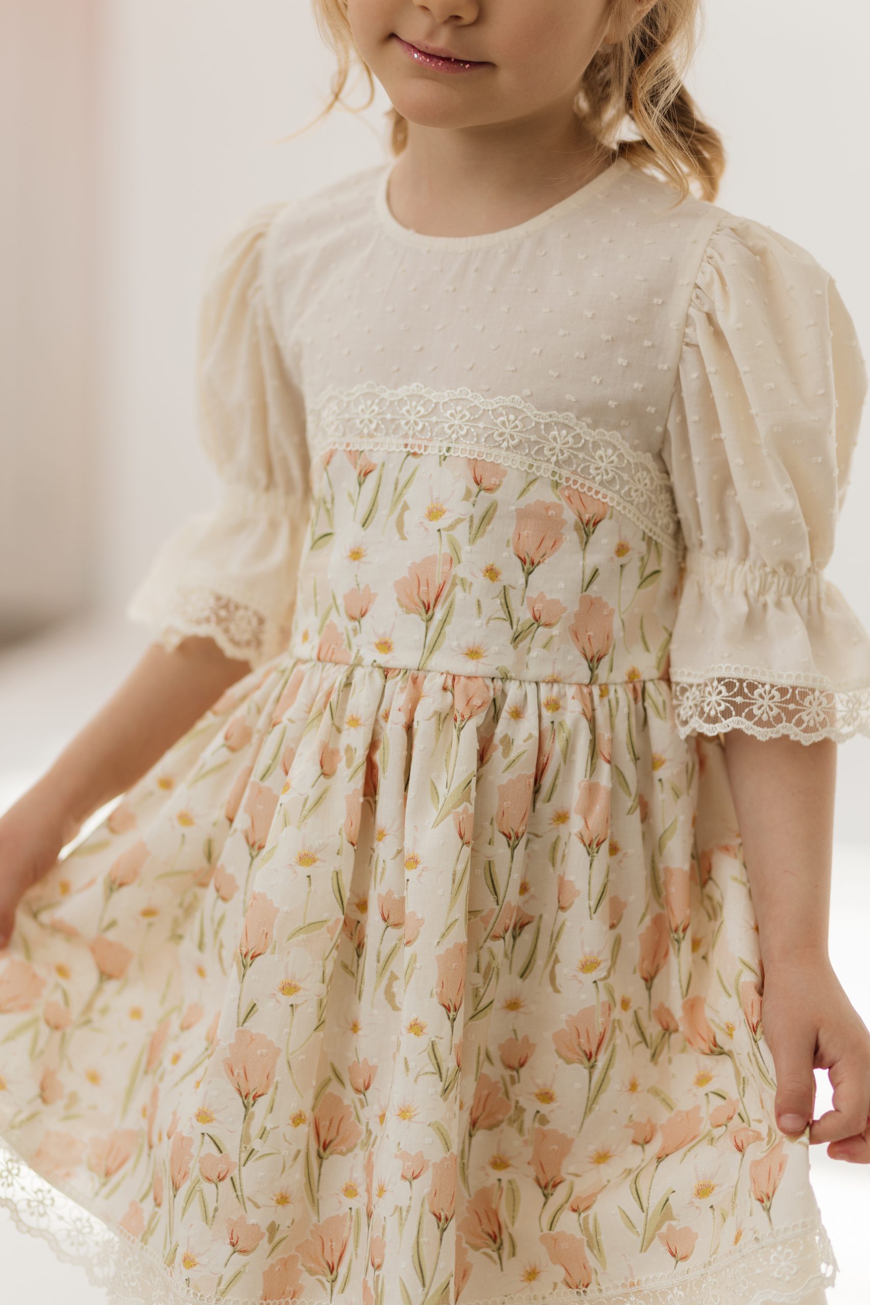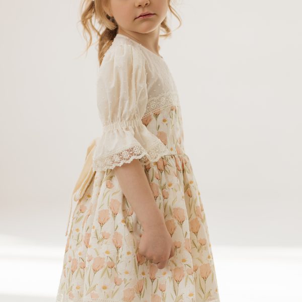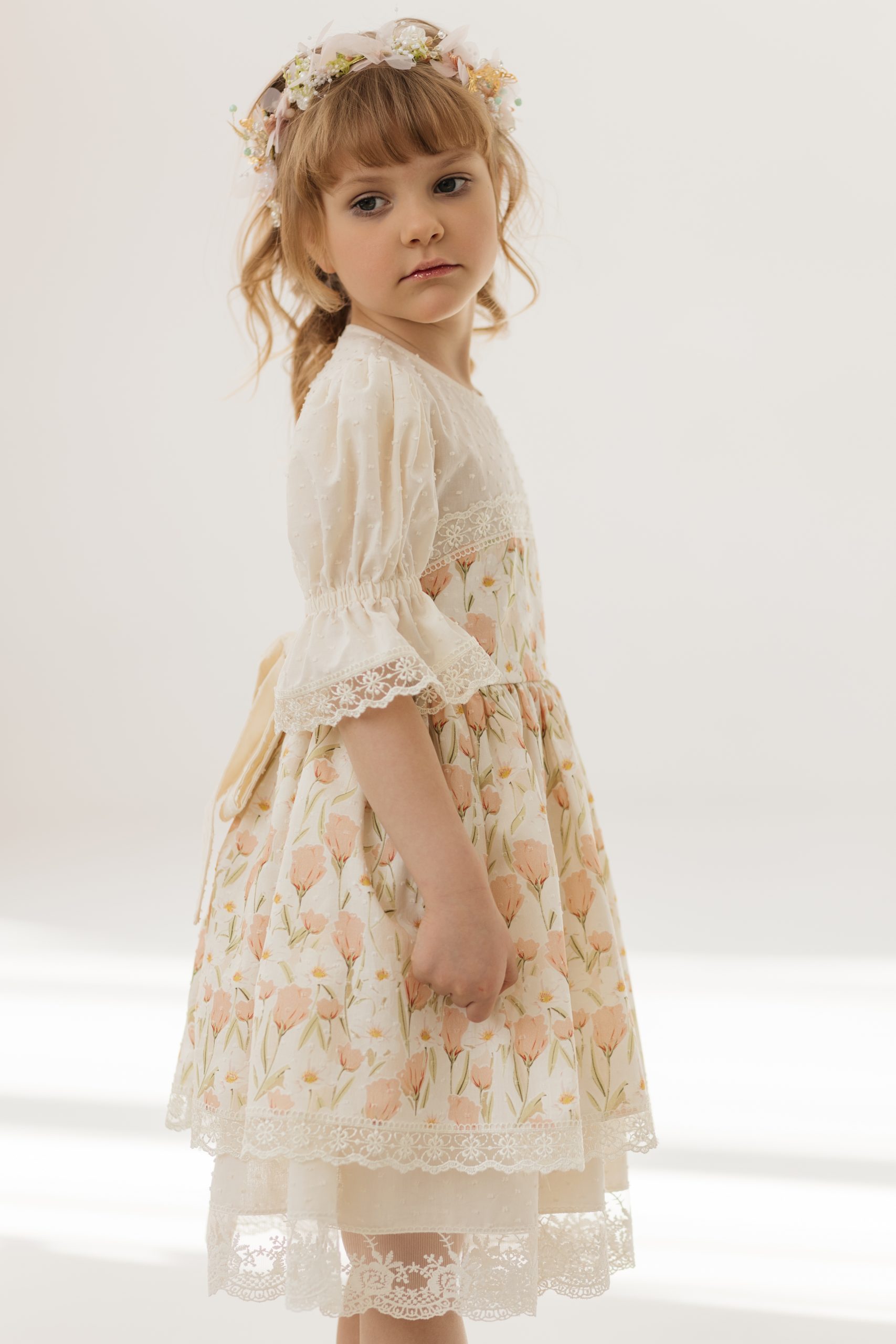 Воздушное и нежное платье из батиста (100% хлопка). Уникальный дизайн и лекала, Х-образный силуэт, хлопковое кружево придают платью особую женственность и легкость.